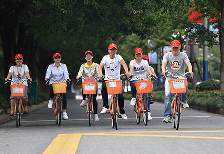 公共自行車員工志愿者一行7人騎著公共自行車沿著南湖周邊,到市中心和人流密集的商場、步行街,向市民發出“讓您的愛車休息一天”的倡議,宣傳綠色出行的環保理念。活動共發放了《無車日倡議書》300余份。