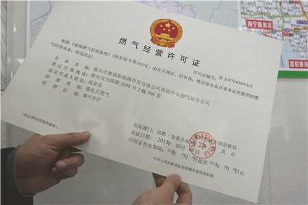 3月9日,嘉興客運中心LNG加氣站正式獲得由嘉興市城鄉規劃建設管理委員會核發的“燃氣經營許可證”,標志著客運中心LNG加氣站正式對外投入運營,這也是嘉興市區范圍內第一張LNG加氣站燃氣經營許可證。
