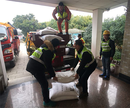 下午1:00,演練開(kāi)始,氣溫急劇下降,高速管理公司所轄杭州灣跨海大橋北接線高速出現(xiàn)猛烈的雨雪。北接線管理處立即啟動(dòng)惡劣天氣應(yīng)急預(yù)案,相關(guān)負(fù)責(zé)人第一時(shí)間趕到監(jiān)控分中心組成應(yīng)急指揮小組,密切關(guān)注天氣、路面車流變化,協(xié)調(diào)各單位配合行動(dòng)。路巡員加大道路現(xiàn)場(chǎng)巡查頻率和人次,發(fā)現(xiàn)高速橋梁出現(xiàn)積雪情況,影響過(guò)往車輛安全通行。監(jiān)控分中心馬上通知高速路政、卓越養(yǎng)護(hù)等單位并立即實(shí)施除雪作業(yè)。