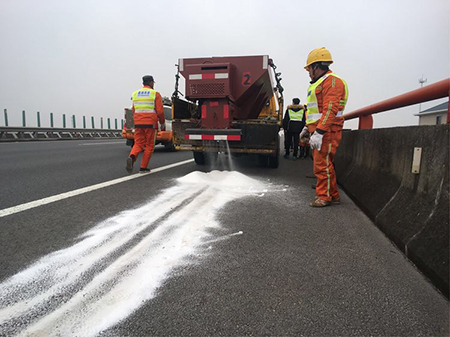 1:20,事先裝好融雪劑的車輛開(kāi)始出發(fā)。1:40,施救車輛到達(dá)積雪橋梁有序撒鹽除雪。2:30,除雪作業(yè)完成,積雪融化,橋梁恢復(fù)正常通行。