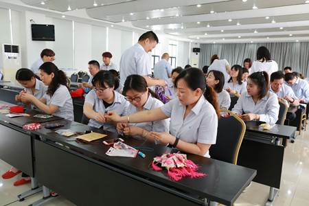 在活動(dòng)開(kāi)展前,公司工會(huì)精心策劃,提前準(zhǔn)備了艾葉、薰衣草、具有驅(qū)蚊效果的中藥、針線包以及布料等制作香囊的材料。活動(dòng)現(xiàn)場(chǎng)熱鬧非凡,公交員工們圍坐在一起,共同觀看了香囊制作步驟圖,隨后大伙兒紛紛拿起香囊材料,擼起袖子,摩拳擦掌,一副躍躍欲試的樣子。手工活比較巧的女同胞們大膽嘗試了難度系數(shù)較高的手工縫制香囊,她們拿起步驟圖仔細(xì)研究和琢磨,還時(shí)不時(shí)地交流技巧和心得。“陳姐,這個(gè)藏針縫法我們倆看了好幾遍說(shuō)明,但還是不得要領(lǐng),您教教我們吧。”“樊師傅,您看我這樣縫對(duì)嗎?”許多參與活動(dòng)的80后、90后公交員工都是第一次制作香囊,她們?cè)诶蠋煾祩兊挠H自示范下最終獨(dú)立完成了縫制、裝香料、封口配繩、穿珠等工序,當(dāng)一個(gè)個(gè)飽滿又精致的三角香囊做好后,她們的內(nèi)心油然而生一股成就感,紛紛拿起手機(jī)拍照,在朋友圈曬出自己的手工成果。男同胞們也不甘示弱,選擇了相對(duì)比較簡(jiǎn)單的手工灌裝香囊,你拿袋子,我裝香料,大家分工配合,不一會(huì)兒就做了許多漂亮又實(shí)用的香囊,得到了在場(chǎng)女同胞的夸贊,難得展現(xiàn)了硬漢柔情的一面。