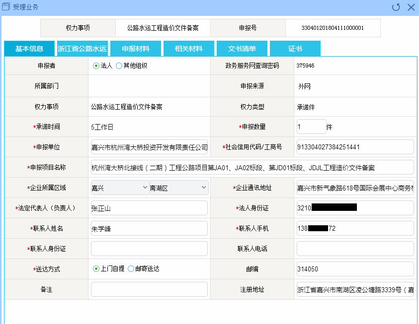 灣北二期工程第JA01、JA02標(biāo)段、第JD01標(biāo)段、JDJL工程造價(jià)文件備案服務(wù)信息